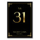 Underbara Gatsby Art Deco bröllop-kort för bordsnummer med gyllene nummer 31 och utbytbar text, där du kan lägga till datum för namn och bröllop, tryckt på svart bakgrund
