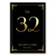 Underbara Gatsby Art Deco bröllop-kort för bordsnummer med gyllene nummer 32 och utbytbar text, där du kan lägga till datum för namn och bröllop, tryckt på svart bakgrund