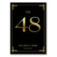 Underbara Gatsby Art Deco bröllop-kort för bordsnummer med gyllene nummer 48 och utbytbar text, där du kan lägga till datum för namn och bröllop, tryckt på svart bakgrund