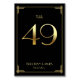 Underbara Gatsby Art Deco bröllop-kort för bordsnummer med gyllene nummer 49 och utbytbar text, där du kan lägga till datum för namn och bröllop, tryckt på svart bakgrund