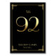 Underbara Gatsby Art Deco bröllop-kort för bordsnummer med gyllene nummer 92 och utbytbar text, där du kan lägga till datum för namn och bröllop, tryckt på svart bakgrund