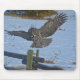 Underbar Grått Uggla och Snö Wildlife Raptor Musmatta