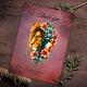 Underbar kvinna vars långa, flödande hår skimrar i ett djupt blått, som påminner om oceanens vidhet. Hennes ansikte, som visar milda och uttrycksfulla drag, är delvis dolt bakom ett majestätiskt lejonhuvud. Lejonets manke lyser i en klar orange, som skapar en kraftfull kontrast till kvinnans känsliga drag och symboliserar både styrka och grace. Designen utstrålar en magisk atmosfär som fångar både styrkan och känsligheten hos den avbildade kvinnan.