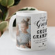 Modern underbar mormor bild mugg med det söta ordspråket "du satte underbaren i underbart mormor", två bilder av barnbarnen, ett hjärta, deras namn och texten "mormas håller vårt lilla händer ett tag, men våra hjärtan för alltid".