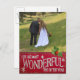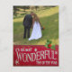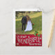Ett gammaldags rött och vitt tecken med julgran och snöflingdekorationer förklarar att det är den underbaraste tiden på året på detta julkort. Ditt eget fotografi, vare sig det är bröllop, familj eller porträtt, tar centerplats högst upp. En ljusröd och grön julgranskvist lägger till mer dekoration mellan skylten och fotot. Baksidan av kortet har gott om utrymme för din anpassade text och personliga hälsning.