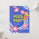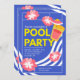 En djärv och fräck inbjudan till poolparty i blått och vitt med flytande blommor och en cocktaildryck. Perfekt för alla sommarfiranden. (<a href='http://www.freepik.com/free-vector/pool-party-poster_799248.htm'>Designad av Freepik</a>). Kortet är lätt att anpassa med din text, teckensnitt, teckensnittsfärg, pappersformalternativ och val av sex papperssorter.<br/><br/>Inte exakt vad du letar efter? Alla våra produkter kan utformas för att passa dina behov utan extra kostnad.<br/><br/>Kontakta oss helt enkelt på heartfelthelper@gmail.com<br/><br/>Koordinerande produkter tillgängliga: Fråga oss bara!
