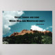 Rocky Mountop med ett inspirerande citat av William Blake: "Underbart sak görs när manar och berg träffas."
