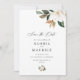 Utformning av vit magnolia blommigt med redigerbar text och underbart skript.