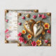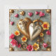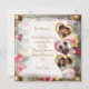Personlig vacker steampunk-mall för Alla hjärtans dag-kort. Vackra guldfärgade och rosa blommor, metallhjärtan och kugghjul. Baksidan har tre fält för bilder i hjärtform. Du kan även redigera texten i det anpassningsbara området.