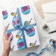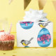 En illustration av en söt tecknad underbar målfågel på ett blått rand färg-Påskägg med rosa band och violettblommor. Detta är en presentidé för jakt på påskägg älskare, vår, älskare och kyckling eller cinciallegra-fågel älskare.