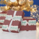 En festlig julklappspapper som passar för alla typer av presenter. Tranbärsfärgad bakgrund med oval grafik som lyder "Det är den underbaraste tiden på året"