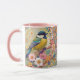 Underbar Tit Chickadee Bird Colorful Blommigt Flow Mugg