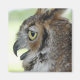 En extrem närhet till ett Underbart Uggla i profil. Underbar Horned Uggla är naturens ultimata rovdjur, och detta är en intim titt på ansikte i en vacker bett fågel.