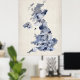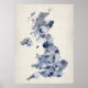 Ett karta i Förenade kungariket i vattenfärg där varje land visas i en annan blå nyans.