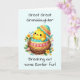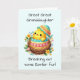 Gratulera till Påsk glädje med din underbar-underbara barndotter genom det här charmkortet. Utformningen har en bra chick som växer fram ur sin snäcka och symboliserar en ny början, omgiven av vibrant vår blommor. Det ljusa och trevliga färg framkallar säsongens färskhet och skapar det som ett val av perfekt för underbara-underbara barndöttrar i alla åldrar. Inuti finns ett hjärtligt budskap som förmedlar varm Påsk önskemål, som syftar till att ge henne ett leende till ansikte och tillföra henne en del av vår glädje. Kortet är ett vackert uttryck för kärlek och firande, och skapar henne verkligen speciell i Påsk.