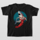 Illustration av en röd jättebläckfisk som angriper en underbar vit haj. Det vilda undervattenslivet kan se ut som fantastisk ibland! Grafisk design för havslevande varelser älskare.