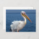 Underbar vit pelican som går på en båt i Walvis Bay, Namibia