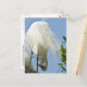 Ett sött, komisk naturfotografi av en Underbar vit Heron som gick upp på en träd-bent över och tittar ner med "grund upp" och vår-betäckningen.. Fågelfotot ger en unik gåva till djur älskare eller fågelskådare.