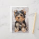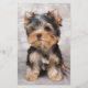 Underbar valp av den Yorkshire terrieren på textilbakgrund