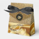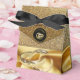 En lyxig shimming av guld silke struktur, som brapade genom två bröllop ringar på en dramatisk svart bakgrund med en Deco stil rand till ge, utformningen av en chic och en glamorös utseendet av en bröllop tack för en som ni föredrar