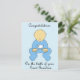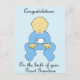 En underbar tecknad pojke klädd i blått och ord "Grattisar vid din Underbara morsons födelse".