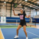 Lustigt dam-skjorta med stor rosa-vit slogan och Underbara sinnen ropar lika Lycklig som bär och bäst önskemål för dina framtida spel!