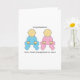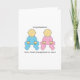 Vänd spädbarn, en i rosa och en i blått och ord "Grattisar du är Underbara morföräldrar till twillingar!"