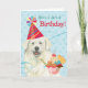 Grattis på födelsedagen med den här söta designen som har en leende, Underbar Pyrenéer i party med en glasssundae. Det går lätt att ändra texten. Klicka bara på knappen Anpassa.