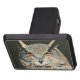 En färg-penna och teckning av ett Underbart hornerat Uggla med piercing orange öga lägger märke till anpassadets släpvagn!