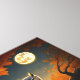 En underbar hornsklubb uggla i träd på hösten mot bakgrund av fullt måne.