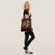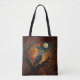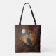En underbar hornsklubb uggla i träd på hösten mot bakgrund av fullt måne.