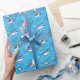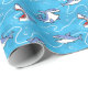 Tecknad, Underbara vita hajar i blå och vit simma under havet på en mönster av det flöda vinkara. Shark fläkt kommer säkert att kunna njuta av den här roliga designen på en mängd olika anpassningsbar party-förråd och presentemballering!
