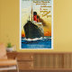 Denna poster i vintage resor är av underbar Western järnväg, direktvägen till Irland via Fishwatch. Denna färgstarka poster är av ett stort ångfartyg som skär genom havet med flockar av fiskmås som flyger runt den.