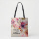 Tote-väskan skildrar en vacker blommigt vattenfärg, inklusive elegantens rosa och lavender-blommor och grönt mot en lätt bakgrund i guld. Den har den älskade kristna Hymn, "Underbaren är Thy Faithessness".