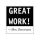 Den här gummidesignen i frimärke innehåller budskapet "UNDERBART ARBETE!" tillsammans med en personlig lärares namn. Detta motiveringsgummi frimärke skulle kunna användas av en lärare när han klassificerar uppdrag, för att erkänna ett student som har utfört ett mycket bra arbete.