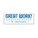 Den här roligten gummiformgivningen i frimärke innehåller det berömmande budskapet "UNDERBART ARBETE!" och personligens namn. Den har även dekorativa stjärnformer. Det skulle kunna användas av en lärare, lärare eller en lärare när de markerar uppdrag för att erkänna att student har gjort bra ifrån sig.