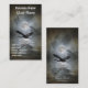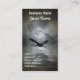 En ensam Underbar Blue Heron glider över svartbelyst vatten och skapar en mycket atmosfärisk utformning för detta outdoorsiga men ändå coola biz-kort. Bild skapades från nyligen tagna fotografier på Vancouver Island.