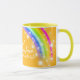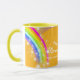 Ljus och färglös regnbågsdotterdotter mugg. Perfektens gåva till din livliga och underbara dotterdotter. Mugg säger: "Underbar mordotter, du är vår skönhets- och ljusstråle". Mugg designade enbart av Sarah Trett.
