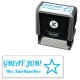 Den här inspirerande gummidesignen i frimärke innehåller det positiva feedbackmeddelandet "UNDERBART JOBB!" och anpassningsbarnas lärare, lärare eller lärare i namn. Den har också en dekorativ stjärnikon. Lärare, lärare, instruktör eller lärare skulle kunna använda den när de graderar student för att visa att ett student har gjort ett enastående arbete.
