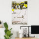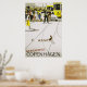 Underbart Köpenhamn. Vintage Dansk reseaffisch. En polistjänsteman stoppar trafiken så att en mor anka och hennes ankungar tryggt kan ta sig kor på gatan i Köpenhamn, Danmark. Vintage resor Poster.