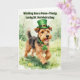 Fira St. Patrick's Day med fyrbenta charm. Detta bedårande akvarellkort har en glad terrier som dansar genom en solig äng, iförd en festlig grön leprechaunhatt och en shamrockhalskedja.