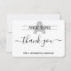 Efter att ha njutit utomordentlig gästfrihet från dina vänner eller släktingar är det ett måste att skicka en tacksedel till värden för den gästfrihet ni har fått. Skriva en handskriven på baksidan av den här moderna eleganten. Tack för att du skriver ut eller användor det skript som vi har ställe på kortet. Vi har skrivit högernas meddelande för att prata just nu, men du kan anpassa det precis som du vill. Leta efter andra varianter av temat i samlingen nedan, eller kontakta oss för att utforma något speciellt bara för dig.