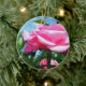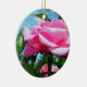 Underbart rosa ros i blå himmel. Glad helg Julgransprydnad Keramik