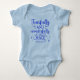 Denna barnens bodysuit är skriven i blått med orden "Underbart skapad". Butiken har också en med orden i rosa.