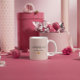 En mjuk rosa kristen mugg med bibelverset ”underbart skapad” från Psaltaren 139:14, designad för att ge uppmuntran och tro i vardagens ögonblick.