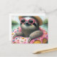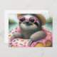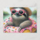 Underbart Sloth flyter i en Glazed Doughnut Vykort