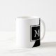 En underbar design för ett kaffe mugg, det här objektet visningar en öga som fångar svartvit monogrammad grafik. Med en svart och vit modern bakgrund skrivs ditt första monogram i mitten av en svart och vit kvadrat. Välj spelar ingen roll teckensnitt färg och skriv önskat. Köp ditt monogram kaffe mugg i dag!