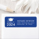 Elegant White studenten returadressetikett med ett Royal Blue grad cap och student namn och adress i modern form.