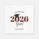 Använda den här personligen, studenten-napkin vid din grad party firande! Den moderna maronformgivningen och svartmålningen ger anpassningsbar för namn i student. Texten lyder: Klass 2025 Grad. Utformningen accentueras med en svart studenten-hatt.