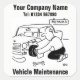 Befordra ditt underhåll av Fordon. Gör det personligt genom att lägga till ditt företags namn och mobila nummer.